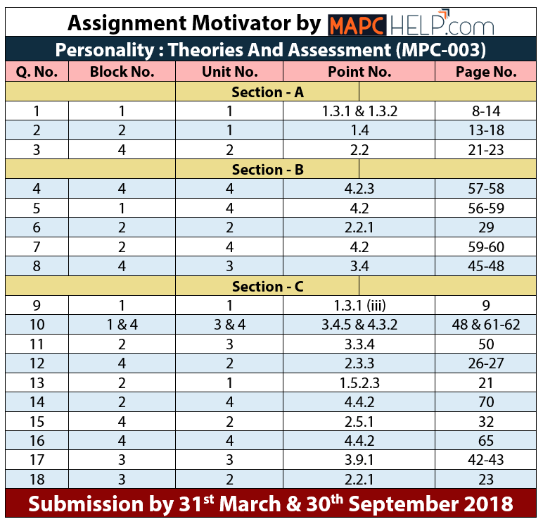 Assignment Motivator for 1st Year June 17 and Jan 18 Batch of IGNOU MAPC students for MPC-003 Personality Assessment and Theories Subject